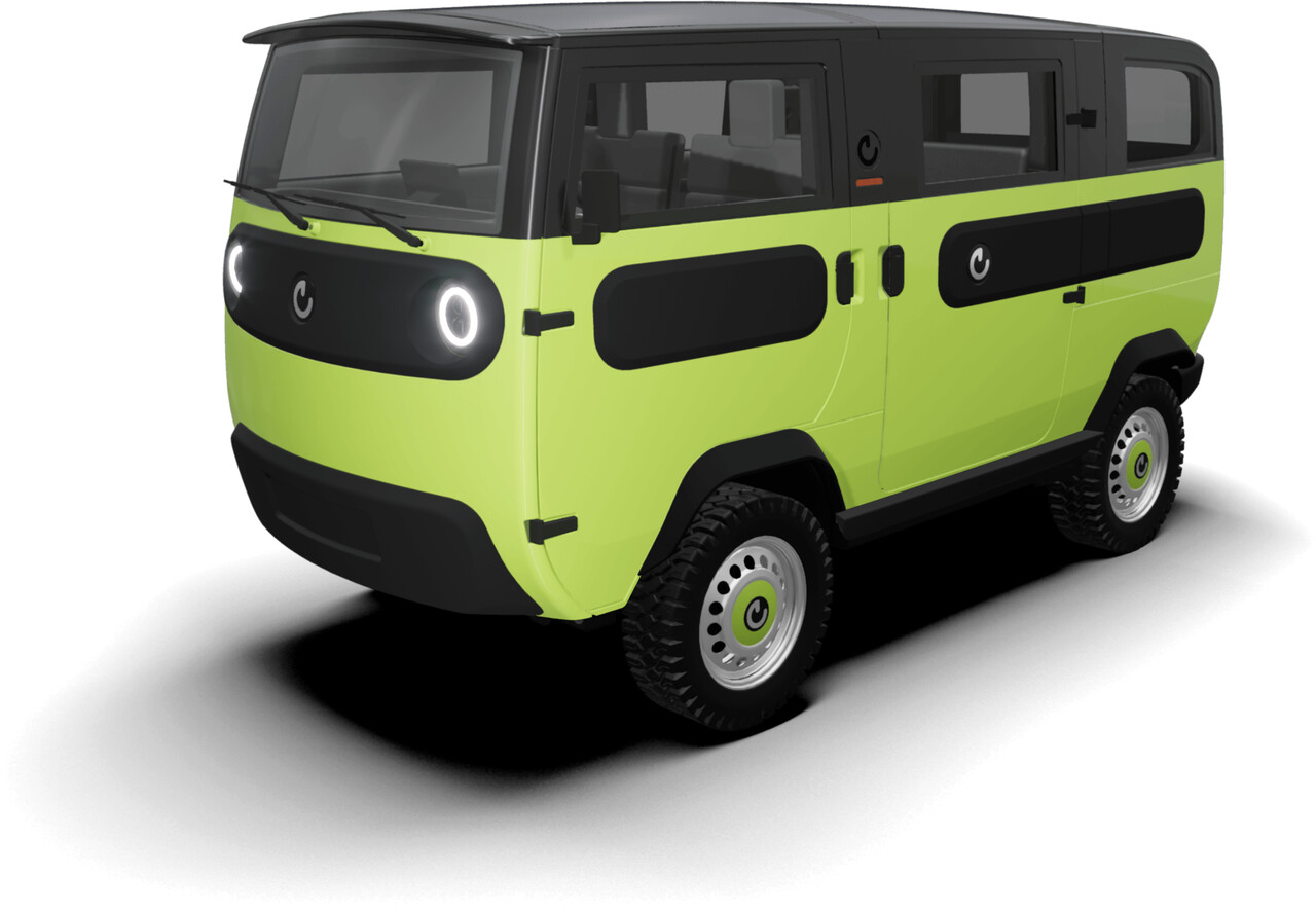 El microbús pesa solo 500 kg y admite una carga total de 1,600 kg. La versión de carretera tiene un tamaño de 394.5 x 169 x 193 cm y la versión todoterreno es un poco más alta y ancha.