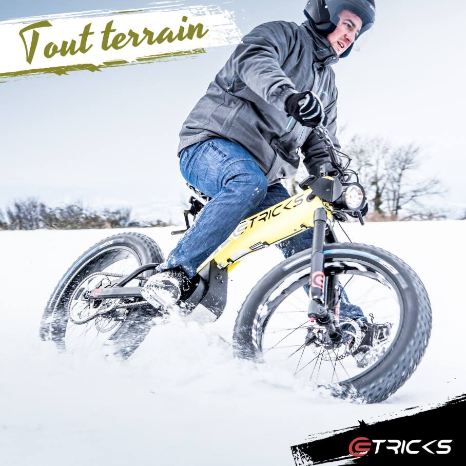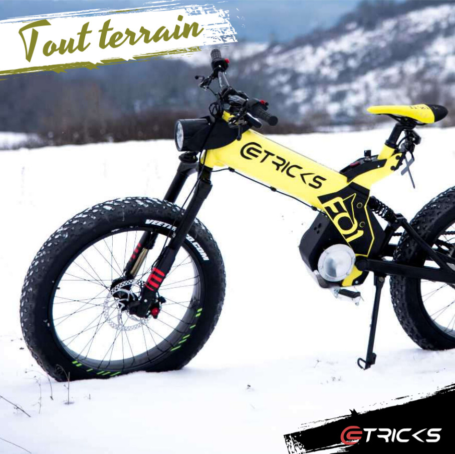El F01 está diseñado para uso todoterreno en playa, arena del desierto y terrenos nevados. El ciclomotor cuenta con neumáticos de 24" X 4.0, suspensión delantera de 100 mm, transmisión por cadena y pesa solo 39 kg.