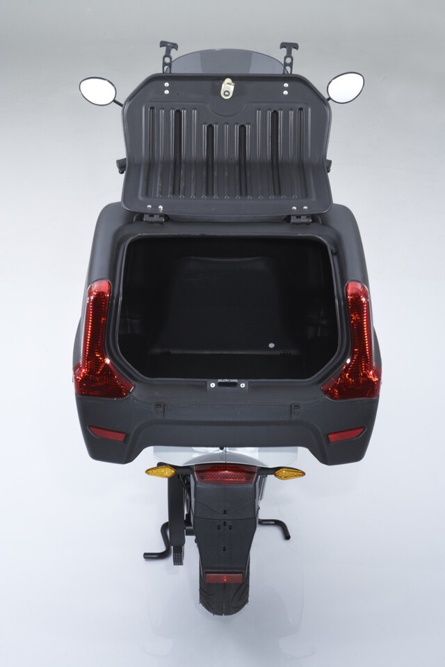 La batería de polímero de litio proporciona un alcance de 70 kilómetros, dependiendo del estilo de conducción. La carga se puede realizar con cualquier toma de corriente estándar con el cargador integrado. Después de dos horas, la batería tiene el 85% de su capacidad.