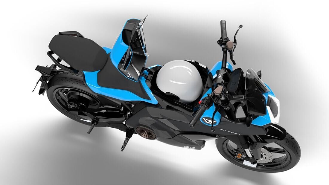 El ciclomotor ofrece un amplio compartimento de almacenamiento que permite guardar un casco.